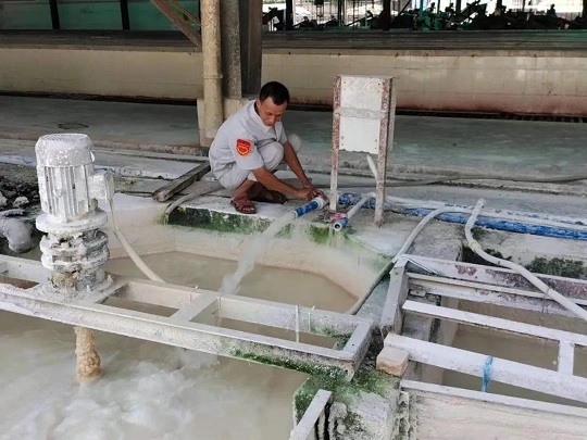 金山加工分公司破解了TSR-10灰分超標難題,管理人員在調(diào)節(jié)石灰水。潘升煜 攝