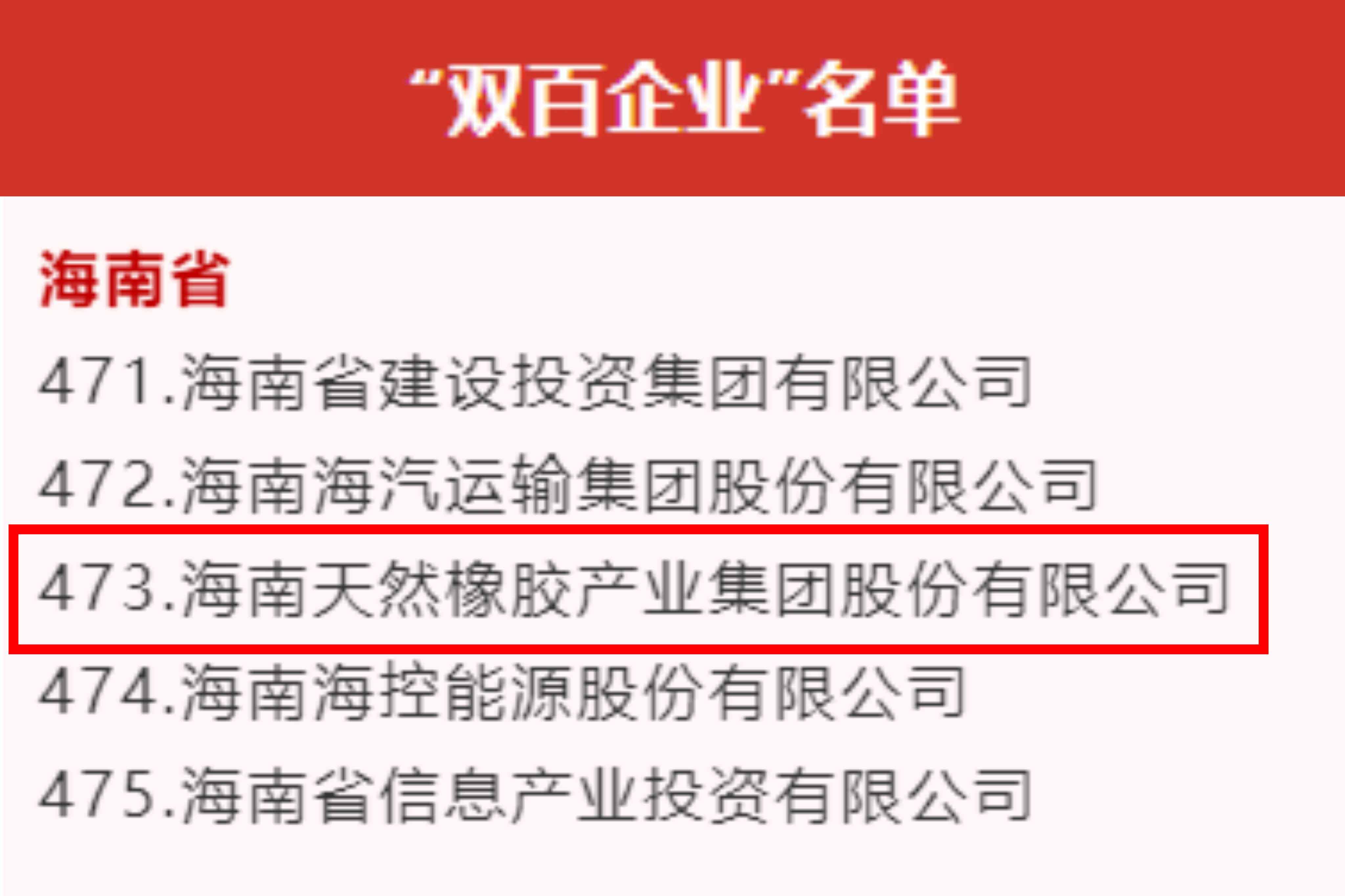 日前,國務(wù)院國資委網(wǎng)站公布最新“雙百企業(yè)”名單,海南共有5家國有企業(yè)上榜,海南橡膠入選名單。